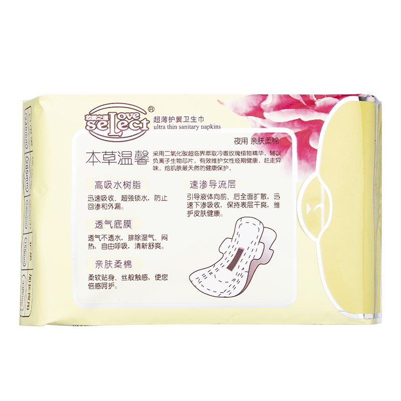 芯愛之選负离子卫生巾冷香玫瑰款采用二氧化碳超临界萃取冷香玫瑰植物精华,辅以负离子生物芯片,促进生物酶氧化,达到完美结合,清爽舒适,增添体香。
