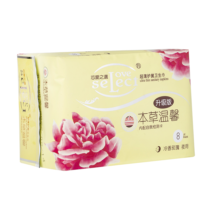 保健护理、机能调节的新一代女性健康产品。芯愛之選负离子卫生巾系采用高科技负离子芯片,配合纯天然药用植物萃取成分,生物亲肤网膜有效护理女性生理环境,无任何副作用;首创性加入远红外抗菌纤维,开辟“医草温经”概念。更亲肤,更透气,更健康,更有效呵护女性经期健康!
