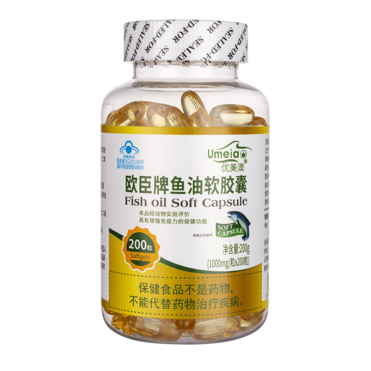 本品是以鱼油、天然维生素E、明胶、甘油、水为主要原料制成的保健食品,经动物功能试验证明,具有增强免疫力的保健功能。