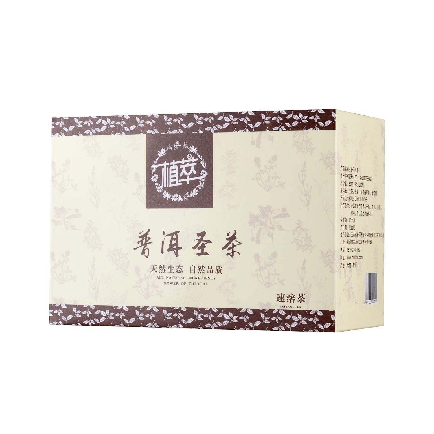 本品采用云南普洱乔木茶、茯苓及圣茶,经过现代精细提取技术制作而成的速溶茶。