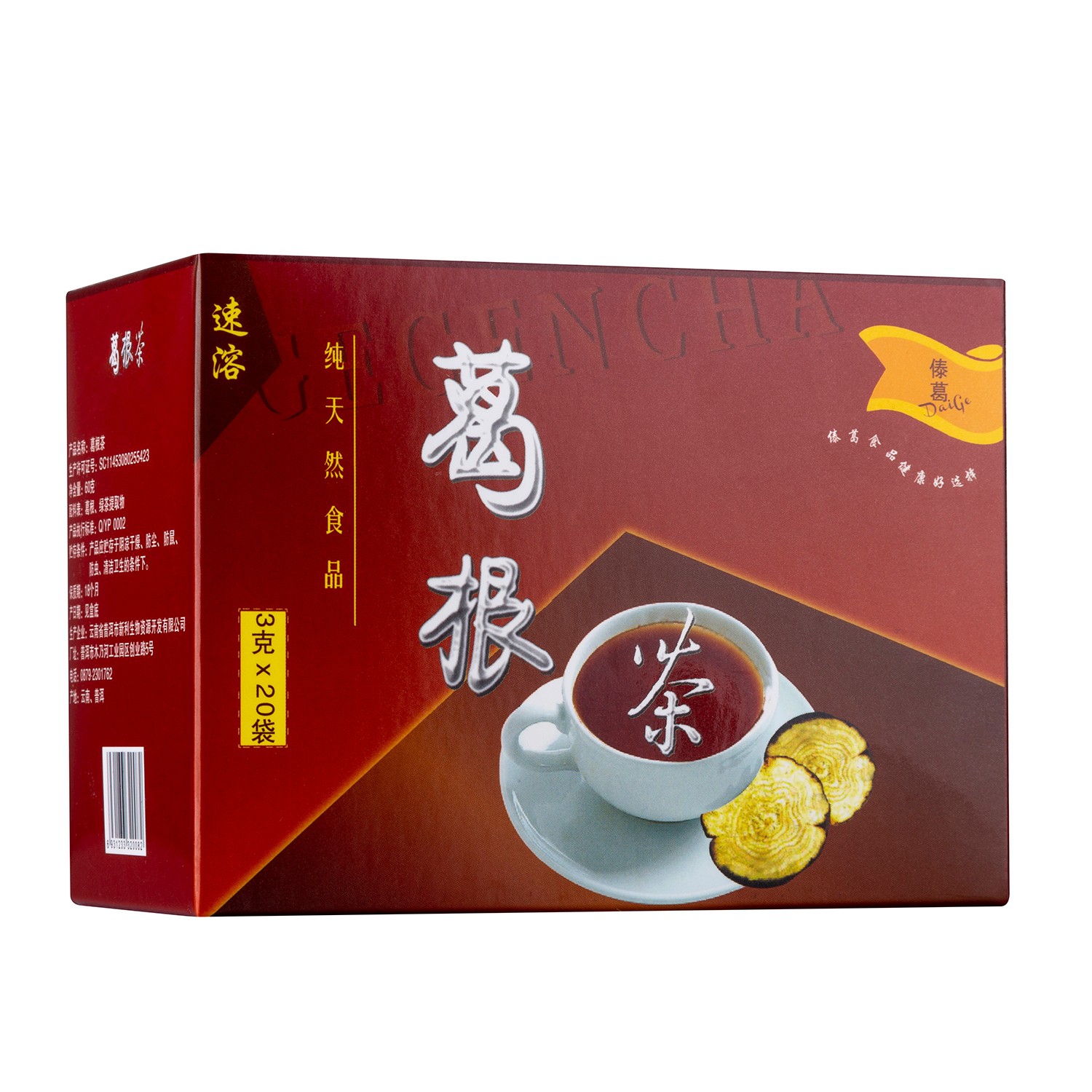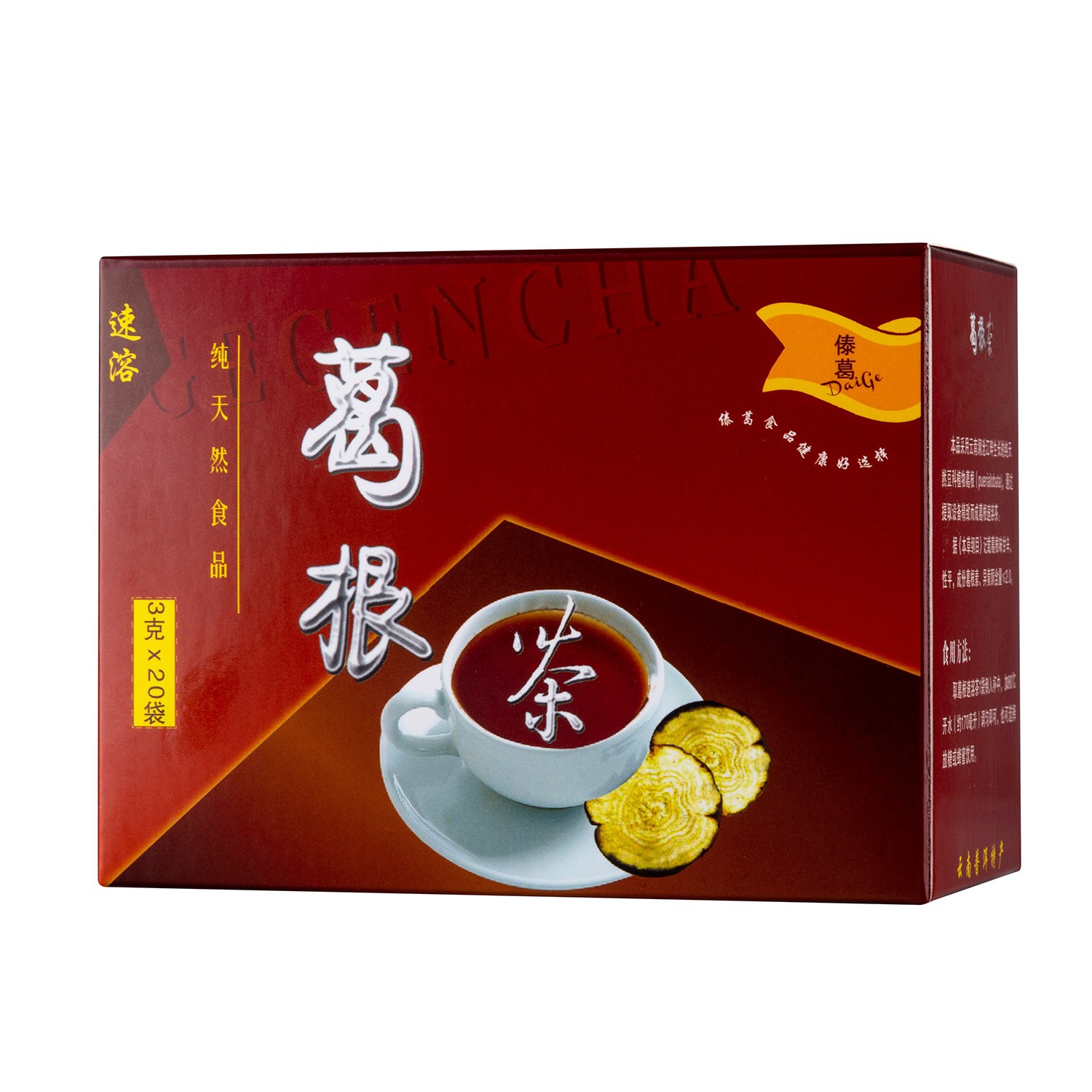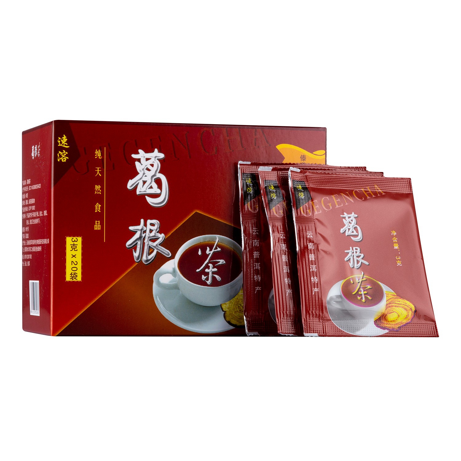 本品采用云南澜沧江畔生长的纯天然豆科植物葛根( puerialobata),通过提取设备精致而成葛根速溶茶。