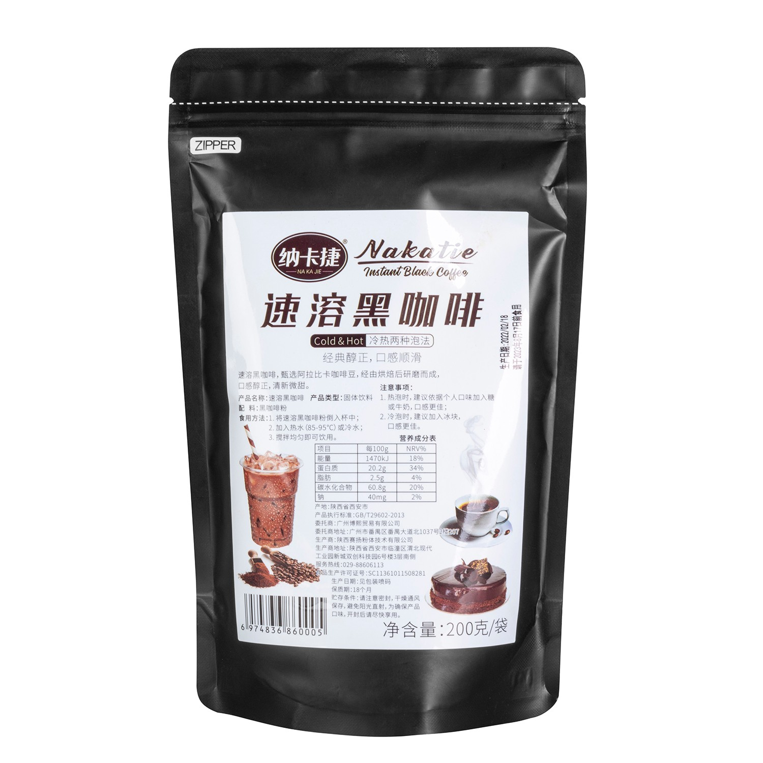 速溶黑咖啡,甄选阿拉比卡咖啡豆,经由烘焙后研磨而成,