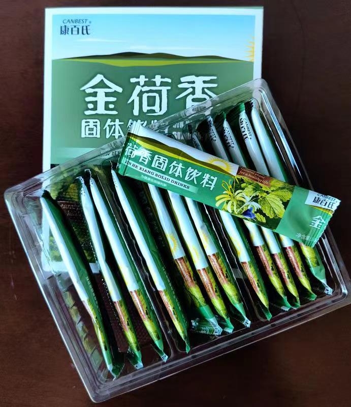配 料:蔗糖、麦芽糊精、藿香提取物、桑叶提取物、桔梗提取物、芦根提取物、金银花提取物、薄荷提取物、鱼腥草提取物、薏苡仁提取物