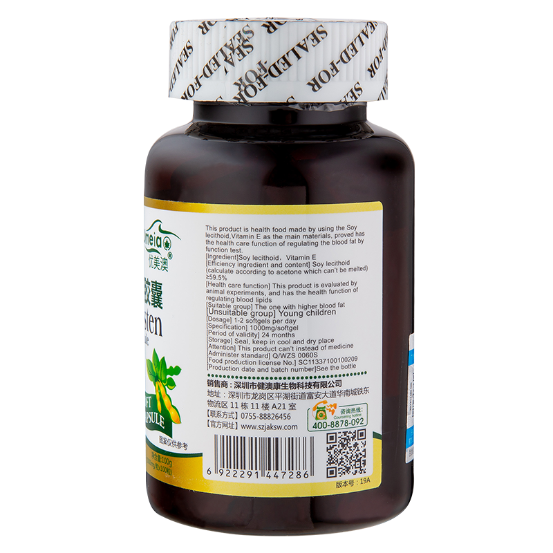 本品是以大豆磷脂、维生素E为主要原料制成的保健食品,经动物功能试验证明,具有调节血脂的保健功能。