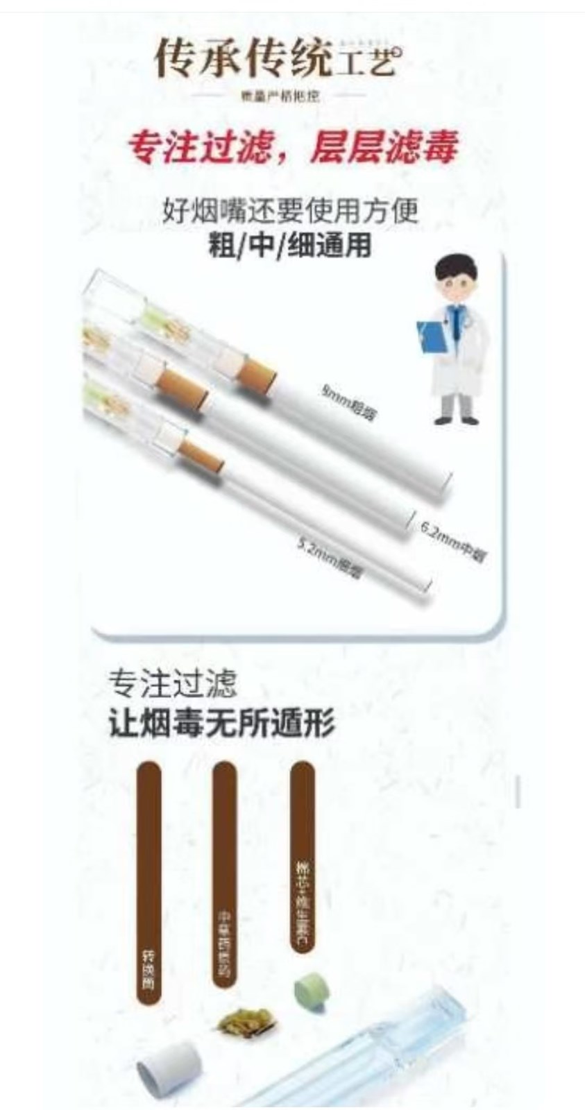 适用于减毒、排毒的中药,对超过200种以上的中草药进行品吸实验,甄选富有生命力和醇和的中草药,采用中草药古法炮制技术和生物还原技术精制而成。